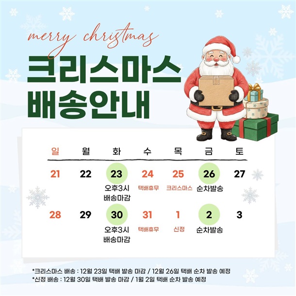 · 배송은 입금확인된 날짜로부터 1~3일 소요되며 최대 7일 이내 출고됩니다. (공휴일, 기상악화 등 불가피한 상황에 따라 추가 지연될 수 있습니다.)