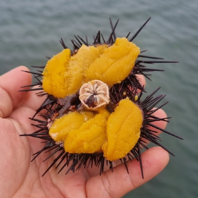 당일 포항 바다에서 잡고, 작업한 성게알이에요.