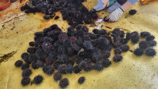 잡은 성게는 오랜 시간 성게알을 작업하신 베테랑 분들이 손질합니다.