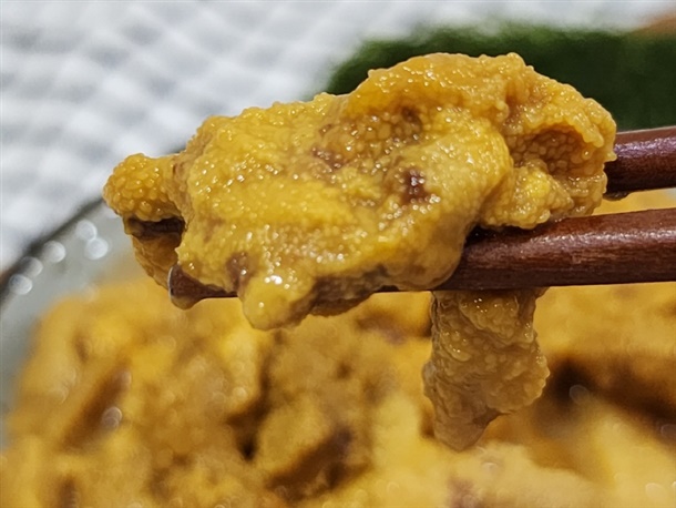 A. 밖에서 흔히 먹는 냉동 성게알이 아니에요.